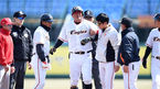 [OSEN=대전, 이대선 기자] 17일 오후 대전 한화생명 이글스 파크에서 한화 이글스와 SK 와이번스의 '2016 타이어뱅크 KBO리그' 시범경기가 열렸다.2회말 1사에서 한화 김태균이 안타를 치고 2루 슬라이딩 과정에서 SK 유서준과 충돌하