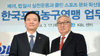 [OSEN=곽영래 기자] 법무부-한국프로농구연맹 클린스포츠 문화와 배려,법질서 실천운동 확산을 위한 업무협약 체결식이 17일 오전 서울 논현동 KBL센터에서 열렸다.김현웅 법무부 장관과 김영기 KBL 총재가 업무협약서를 들고 포토