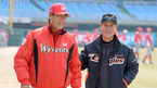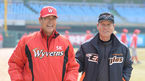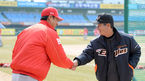 [OSEN=대전, 이대선 기자] 17일 오후 대전 한화생명 이글스 파크에서 한화 이글스와 SK 와이번스의 '2016 타이어뱅크 KBO리그' 시범경기가 열렸다.경기에 앞서 SK 김용희 감독과 한화 김성근 감독이 인사를 나누고있다. /sunday@osen.co.kr