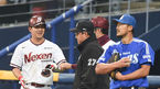 [OSEN=고척, 박준형 기자] 20일 오후 서울 고척스카이돔에서 열린 '2016 타이어뱅크 KBO 리그' 넥센 히어로즈와 삼성 라이온즈의 시범경기, 6회말 넥센 이택근의 타석때 권영철 구심이 김현우 투수에게 다가가 구두로 주의를 주고 있