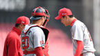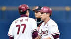 [OSEN=고척, 이동해 기자] 22일 오후 서울 고척스카이돔에서 열린 '2016 타이어뱅크 KBO 리그' 넥센 히어로즈와 롯데 자이언츠의 시범경기, 5회말 무사 2루 넥센 서건창이 1타점 2루타 적시타를 치고 강병식 코치와 이야기 하고 있다.