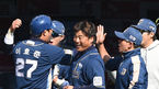 [OSEN=인천, 지형준 기자] 25일 오후 인천 SK행복드림구장에서 열린 '2016 타이어뱅크 KBO리그' 시범경기 SK 와이번스와 NC다이노스의 경기, 7회초 1사에서 NC 이호준이 솔로포를 날리고 동료선수들과 하이파이브를 하고 있다./jpnews@osen