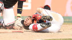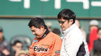 [OSEN=대전, 곽영래 기자] 25일 오후 대전 한화생명 이글스파크에서 열린 '2016 타이어뱅크 KBO 리그' 한화 이글스와 kt 위즈의 시범경기, 7회말 1사 2루 kt 김사율이 자신의 공에 맞아 고통스러워하는 한화 이용규를 바라보고 있다. / y