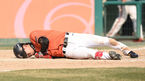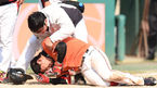[OSEN=대전, 이상학 기자] 한화 외야수 이용규가 손목에 공을 맞아 쓰러졌다.이용규는 25일 대전한화생명이글스파크에서 열린 2016 타이어뱅크 KBO리그 kt와 시범경기에 2번타자 중견수로 선발출장, 7회 1사 1루에서 김사율의 2구째