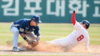 [OSEN=대전, 곽영래 기자] 25일 오후 대전 한화생명 이글스파크에서 열린 '2016 타이어뱅크 KBO 리그' 한화 이글스와 kt 위즈의 시범경기, 7회초 2사 1,3루 kt 배병옥이 한화 이재우의 1루 견제 실책으로 3루까지 진루하고 있다. / youngrae@