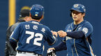 [OSEN=고척, 최규한 기자] 26일 오후 서울 고척스카이돔에서 열린 '2016 타이어뱅크 KBO 리그' 넥센 히어로즈와 NC 다이노스의 경기, 5회초 2사 1루 상황 나성범이 1타점 동점 적시 2루타를 날리고 전준호 코치와 인사를 나누고 있다. /d