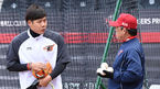 [OSEN=광주, 곽영래 기자] 26일 오후 광주 기아챔피언스필드에서 열리는 '2016 타이어뱅크 KBO 리그' KIA 타이거즈와 한화 이글스의 시범경기에 앞서 한화 권혁이 KIA 조계현 코치와 이야기를 나누고 있다. / youngrae@osen.co.kr