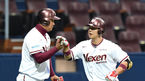 [OSEN=고척, 최규한 기자] 26일 오후 서울 고척스카이돔에서 열린 '2016 타이어뱅크 KBO 리그' 넥센 히어로즈와 NC 다이노스의 경기, 4회말 무사 1루 상황 넥센 윤석민이 역전 투런포를 홈을 밟은 뒤 채태인과 인사를 나누고 있다. /drea