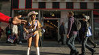 [OSEN=사진팀] 지난 겨울 뉴욕의 타임스퀘어에서 비키니 차림의 네이키드 카우걸 패트리시아 벅이 기타를 치며 사람들의 시선을 끌고 있다. /photo@osen.co.kr ⓒAFPBBNews = News1(무단전재 및 배포금지)