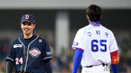 [OSEN=대구, 곽영래 기자] 1일 오후 대구삼성라이온즈파크에서 열린 '2016 타이어뱅크 KBO 리그' 삼성 라이온즈와 두산 베어스의 경기, 7회말 2사 2,3루 두산 오재원이 삼성 구자욱의 타구가 좌익수에게 잡힌 뒤 구자욱과 이야기를 나