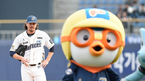 [OSEN=창원, 이대선 기자] 2일 오후 경남 창원 마산야구장에서 ‘2016 타이어뱅크 KBO 리그’ NC 다이노스와 KIA 타이거즈 경기가 열렸다.경기에 앞서 NC 선발투수 스튜어트가 뽀로로의 시구를 바라보고 있다. /sunday@osen.co.kr
