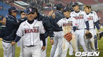 [OSEN=잠실, 백승철 기자] 5일 오후 서울 잠실구장에서 열린 '2016 타이어뱅크 KBO 리그' 두산 베어스와 NC 다이노스의 경기 종료 후 두산 선수들이 하이파이브를 하고 있다.두산은 이날 홈개막전에서 NC를 6-2로 꺾었다. / baik@osen.co.kr