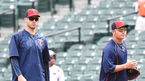[OSEN=볼티모어(미국),박준형 기자] 5일(한국시간) 미국 메릴랜드주 볼티모어 오리올 파크에서 열린 2016 메이저리그(MLB) 볼티모어 오리올스와 미네소타 트윈스의 개막전 경기에 앞서 미네소타 박병호와 마우어가 1루 수비를 하고