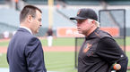 [OSEN=볼티모어(미국),박준형 기자] 5일(한국시간) 미국 메릴랜드주 볼티모어 오리올 파크에서 열린 2016 메이저리그(MLB) 볼티모어 오리올스와 미네소타 트윈스의 개막전 경기에 앞서 볼티모어 듀켓 단장과 쇼월터 감독이 이야기