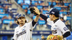 [OSEN=창원, 민경훈 기자] 8일 오후 경상남도 창원시 마산야구장에서 '2016 타이어뱅크 KBO 리그' NC 다이노스와 한화 이글스의 경기가 열렸다.6회를 마친 NC 선발 스튜어트가 박민우와 하이파이브를 하고 있다./ rumi@osen.co.kr