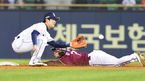 [OSEN=잠실, 백승철 기자] 8일 오후 서울 잠실구장에서 열린 '2016 타이어뱅크 KBO 리그' 두산 베어스와 넥센 히어로즈의 경기 3회초 1사 1루 서건창 삼진 상황, 1루주자 김하성이 도루에 성공하고 있다. / baik@osen.co.k