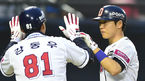 [OSEN=잠실, 백승철 기자] 9일 오후 서울 잠실구장에서 열린 '2016 타이어뱅크 KBO 리그' 두산 베어스와 넥센 히어로즈의 경기 5회말 2사 2,3루 정수빈이 스리런홈런을 치고 덕아웃으로 향하며 강동우 코치와 하이파이브를 하고 있다.