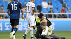 [OSEN=부산, 민경훈 기자] 9일 오후 부산광역시 사직야구장에서 '2016 타이어뱅크 KBO 리그' 롯데 자이언츠와 삼성 라이온즈의 경기가 열렸다.8회초 2사 주자 1,2루 삼성 구자욱이 자신의 파울타구를 다리에 맞은 후 넘어져있다. / rumi@