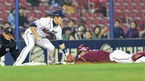 [OSEN=잠실, 백승철 기자] 9일 오후 서울 잠실구장에서 열린 '2016 타이어뱅크 KBO 리그' 두산 베어스와 넥센 히어로즈의 경기 10회초 1사 2루 이택근 타석, 2루주자 서건창이 도루에 실패하고 있다. / baik@osen.co.kr