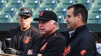 [OSEN=볼티모어(미국),박준형 기자] 9일(한국시간) 미국 메릴랜드주 볼티모어 오리올 파크 앳 캠든 야드에서 열린 '2016 메이저리그(MLB)' 볼티모어 오리올스와 탬파베이 레이스의 경기에 앞서 볼티모어 김현수가 쇼월터 감독과 듀켓