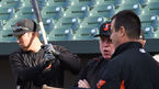 [OSEN=볼티모어(미국),박준형 기자] 9일(한국시간) 미국 메릴랜드주 볼티모어 오리올 파크 앳 캠든 야드에서 열린 '2016 메이저리그(MLB)' 볼티모어 오리올스와 탬파베이 레이스의 경기에 앞서 볼티모어 김현수가 듀켓 단장이 보는