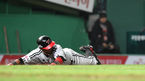 [OSEN=인천, 최규한 기자] 10일 오후 인천 SK행복드림구장에서 '2016 타이어뱅크 KBO 리그' SK 와이번스와 LG 트윈스의 경기가 열렸다.8회초 무사 1루 상황 LG 히메네스가 추격의 좌월 투런포를 날리고 그라운드를 돌다 넘어지고 있다. /