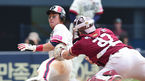 [OSEN=잠실, 백승철 기자] 10일 오후 서울 잠실구장에서 열린 '2016 타이어뱅크 KBO 리그' 두산 베어스와 넥센 히어로즈의 경기 6회말 2사 2루 정수빈의 좌전안타에 홈까지 쇄도하던 2루주자 허경민이 홈에서 태그아웃 당하고 아쉬운