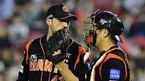 [OSEN=잠실, 백승철 기자] 13일 오후 서울 잠실구장에서 열린 '2016 타이어뱅크 KBO 리그' LG 트윈스와 롯데 자이언츠의 경기 2회말 1사 1루 채은성 타석, 린드블럼과 강민호가 이야기를 나누고 있다. / baik@osen.co.kr