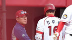 [OSEN=광주, 최규한 기자] 15일 오후 광주-기아 챔피언스 필드에서 '2016 타이어뱅크 KBO 리그' KIA 타이거즈와 넥센 히어로즈의 경기가 열렸다.1회말 1사 2루 상황 김주찬이 동점 투런포를 날리고 KIA 김기태 감독과 인사를 나누고 있다