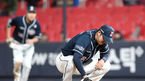 [OSEN=수원, 곽영래 기자] 19일 오후 서울 수원 kt위즈파크에서 열린 '2016 타이어뱅크 KBO 리그' kt위즈와 두산 베어스의 경기, 4회말 1사 만루 두산 장원준이 kt 박경수를 3루수 앞 땅볼로 병살 처리한 뒤 숨고르고 있다. / youngrae@osen.co