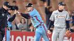 [OSEN=잠실, 최규한 기자] 20일 오후 서울 잠실구장에서 '2016 타이어뱅크 KBO 리그' LG 트윈스와 NC 다이노스의 경기가 열렸다.6회초 1사 1, 2루 상황 손시헌을 병살로 이끌며 무실점으로 이닝을 마친 LG 투수 유원상이 히메네스와 인사