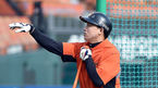 [OSEN=부산, 이동해 기자] 21일 오후 부산광역시 사직야구장에서 열리는 ‘2016 타이어뱅크 KBO 리그’ 롯데 자이언츠와 한화 이글스의 경기에 앞서 롯데 황재균이 훈련을 하며 미소 짓고 있다. /eastsea@osen.co.kr