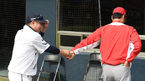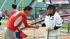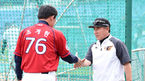 [OSEN=대전, 이대선 기자] 26일 오후 대전 한화생명이글스파크에서 열릴 ‘2016 타이어뱅크 KBO리그’ 한화 이글스와 KIA 타이거즈의 경기에 앞서 한화 김재현 코치가 KIA 노수광과 인사를 나누고 있다. /sunday@osen.co.kr