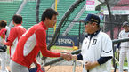 [OSEN=잠실, 지형준 기자] 26일 오후 서울 잠실야구장에서 열린 ‘2016 타이어뱅크 KBO 리그’ 두산 베어스와 SK 와이번스의 경기, 경기에 앞서 SK 김광현이 두산 김태형 감독과 이야기를 나누고 있다. /jpnews@osen.co.kr