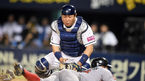 [OSEN=잠실, 지형준 기자] 26일 오후 서울 잠실야구장에서 열린 ‘2016 타이어뱅크 KBO 리그’ 두산 베어스와 SK 와이번스의 경기, 9회초 1사 3루에서 두산 양의지가 SK 최승준의 1루 땅볼에 3루주자 유서준을 태그아웃 시키고 있