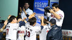 [OSEN=잠실, 지형준 기자] 26일 오후 서울 잠실야구장에서 열린 ‘2016 타이어뱅크 KBO 리그’ 두산 베어스와 SK 와이번스의 경기, 8회말 1사에서 두산 양의지가 좌중월 솔로포를 날리고 동료선수들과 기뻐하고 있다. /jpnews@osen.c