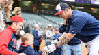 [OSEN=미니애폴리스(미국 미네소타), 박준형 기자] 26일(한국시간) 미국 미네소타주 미니애폴리스의 타깃 필드에서 열린 2016 메이저리그 미네소타 트윈스와 클리블랜드 인디언스의 경기에 앞서 미네소타 박병호가 꼬마 야구팬에