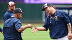 [OSEN=미니애폴리스(미국 미네소타), 박준형 기자] 26일(한국시간) 미국 미네소타주 미니애폴리스의 타깃 필드에서 열린 2016 메이저리그 미네소타 트윈스와 클리블랜드 인디언스의 경기에 앞서 미네소타 박병호가 짓꿎은 장난을