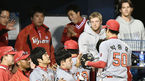 [OSEN=잠실, 민경훈 기자] 27일 오후 잠실구장에서 '2016 타이어뱅크 KBO 리그' 두산 베어스와 SK 와이번스의 경기가 열렸다.6회말을 마친 후 SK 선발 박종훈이 덕아웃에서 동료들의 축하를 받고 있다. / rumi@osen.co.kr
