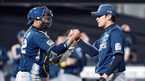 [OSEN=수원, 이동해 기자] 4일 수원 케이티 위즈파크에서 열린 '2016 타이어뱅크 KBO리그' kt wiz와 NC 다이노스의 경기, 9회말 NC 마무리투수 임창민이 김태군의 수비에 고맙다는 제스처를 보이고 있다. /eastsea@osen.co.kr