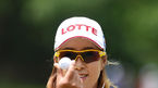 [OSEN=수원, 지형준 기자] 15일 경기도 수원 컨트리클럽에서 열린 '2016 NH투자증권 레이디스 챔피언십' 3라운드, 박결이 1번홀 드라이버 티샷을 마치고 팬들에 인사를 하고 있다. /jpnews@osen.co.kr