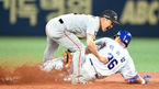 [OSEN=포항, 곽영래 기자] 19일 오후 경상북도 포항시 남구 포항야구장에서 '2016 타이어뱅크 KBO 리그' 삼성 라이온즈와 한화 이글스의 경기가 열렸다.5회말 무사 1,2루 한화 정근우가 삼성 이승엽의 유격수 땅볼때 공을 놓치고 있다.