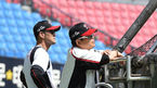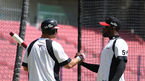 [OSEN=대전, 백승철 기자] 21일 오후 대전 한화생명 이글스 파크에서 열리는 '2016 타이어뱅크 KBO 리그' 한화 이글스와 kt 위즈의 경기 시작전 훈련에서 정근우와 로사리오가 장난을 치고 있다. / baik@osen.co.kr