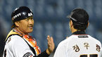 [OSEN=대전, 백승철 기자] 31일 오후 대전 한화생명 이글스 파크에서 열린 '2016 타이어뱅크 KBO 리그' 한화 이글스와 SK 와이번스의 경기 종료 후 조인성과 정우람이 하이파이브를 하고 있다.한화는 이날 SK를 8-4로 꺾고 5연승을 기록
