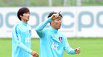 [잘츠부르크(오스트리아)=손용호 기자]세계 6위의 강호 스페인과 평가전을 앞둔태극전사들이 30일(한국시간) 잘즈부르크에서 슈틸리케 감독의 지휘 아래 구슬땀을 흘렸다.석현준이 윤빛가람에게 음료수를 건네고있다./spjj@osen.co