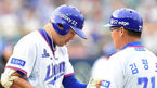 [OSEN=대구, 백승철 기자] 4일 오후 대구 삼성 라이온즈 파크에서 열린 '2016 타이어뱅크 KBO 리그' 삼성 라이온즈와 한화 이글스의 경기 3회말 1사 1루 박한이가 볼넷으로 출루 후 김평호 코치와 하이파이브를 하고 있다. / baik@osen.co.
