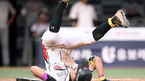 [OSEN=수원, 최규한 기자] 5일 오후 경기도 수원 kt위즈파크에서 '2016 타이어뱅크 KBO 리그' kt 위즈와 LG 트윈스의 경기가 열렸다.3회초 1사 2, 3루 임훈 타석 때런다운에 걸린 2루 주자 정주현이 3루에서 태그아웃 되고 있다. /dreamer@osen