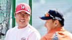 [OSEN=잠실, 이대선 기자] 7일 오후 서울 잠실야구장에서 열릴 ‘2016 타이어뱅크 KBO 리그’ LG 트윈스와 삼성 라이온즈의 경기에 앞서 LG 히메네스와 박용택이 타격 훈련 중 이야기를 나누고 있다. /sunday@osen.co.kr