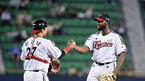 [OSEN=수원, 민경훈 기자] 9일 오후 수원 케이티 위즈파크에서 '2016 타이어뱅크 KBO리그' kt wiz와 두산 베어스의 경기가 열렸다.8회말 무사 주자 2루 kt 마르테 타석에서 두산 한용덕 수석코치가 마운드에 올란 두산 선발 니퍼트와 얘