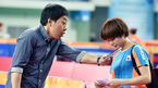 [OSEN=인천, 이동해 기자] 24일 인천 남동체육관에서 열린 ‘2016 코리아오픈 국제탁구대회’여자단식 1라운드, 중국 주율링과의 경기에서 유남규 코치가 최효주와 이야기 나누고 있다. /eastsea@osen.co.kr